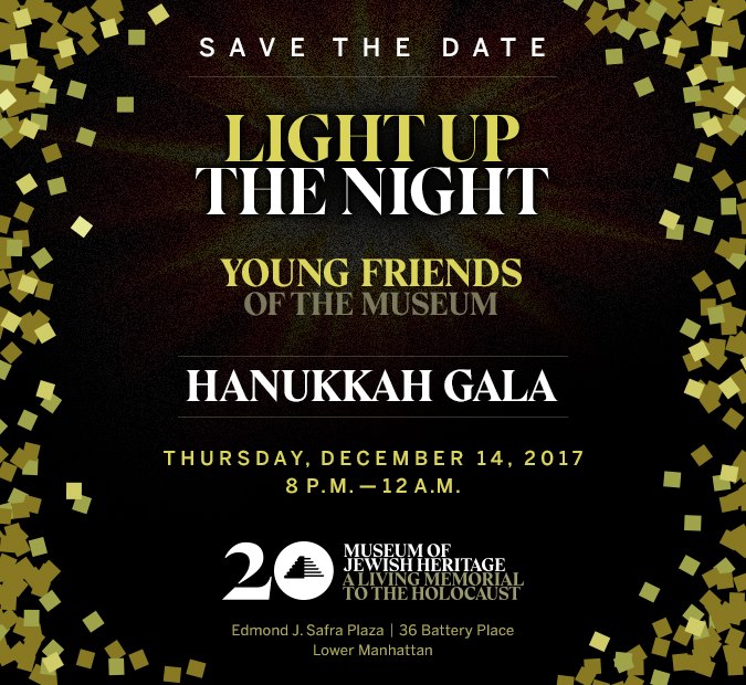 The Young Friends of the Museum of Jewish Heritage invite you to Light Up the Night! Dance the night away, fueled by scrumptious eats (our latke bar is legendary) and a premium open bar. Bid on an array of high-end prizes in our silenct auction, all proceeds benefit the Museum. Top the night off with our red carpet photo booth, candy bar, and Hannukah gift bags!